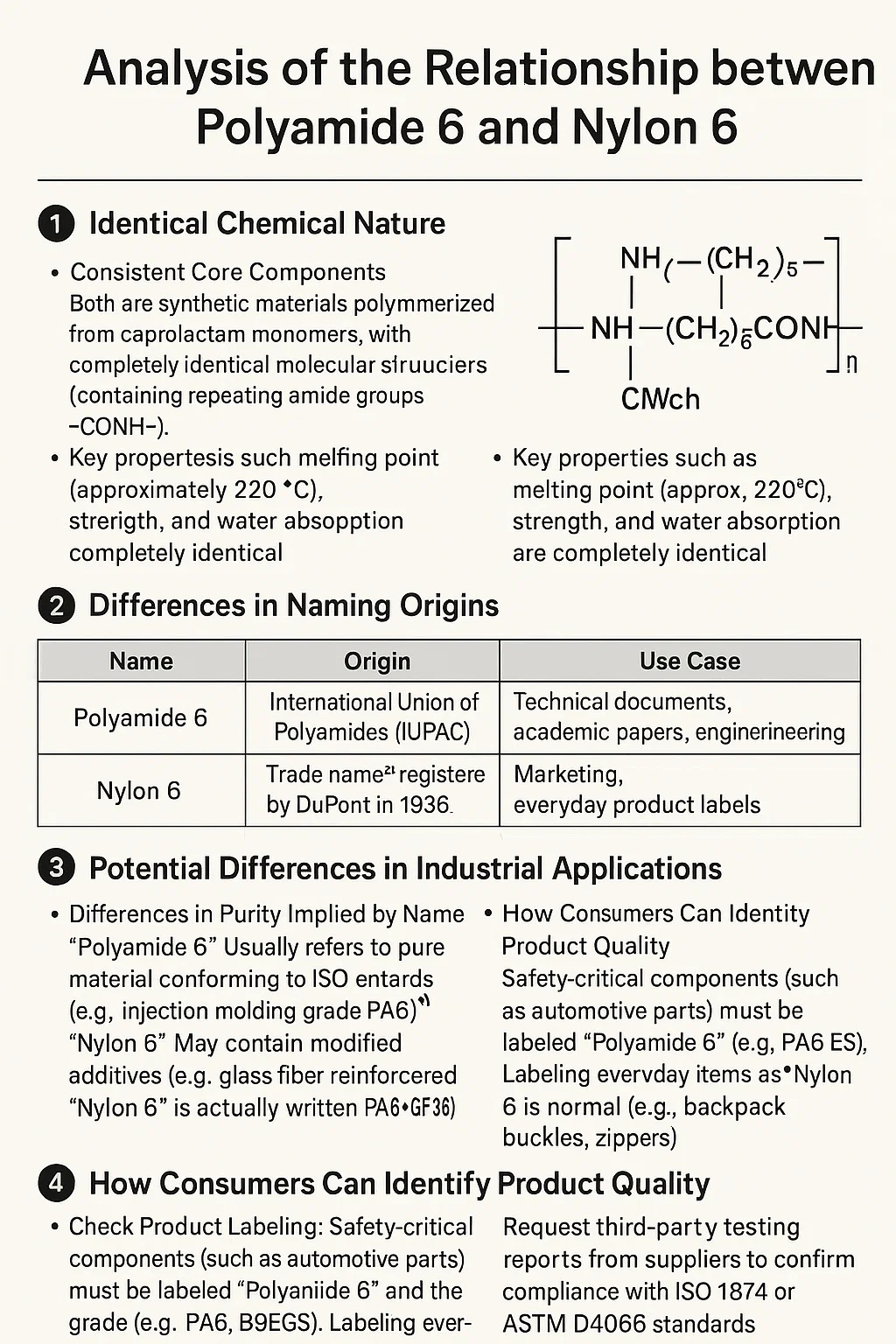 • Konzistentné základné zložky: Obidva sú syntetické materiály polymerizované z kaprolaktámových monomérov s úplne identickými molekulovými štruktúrami (obsahujúce opakujúce sa amidové skupiny -CONH-).