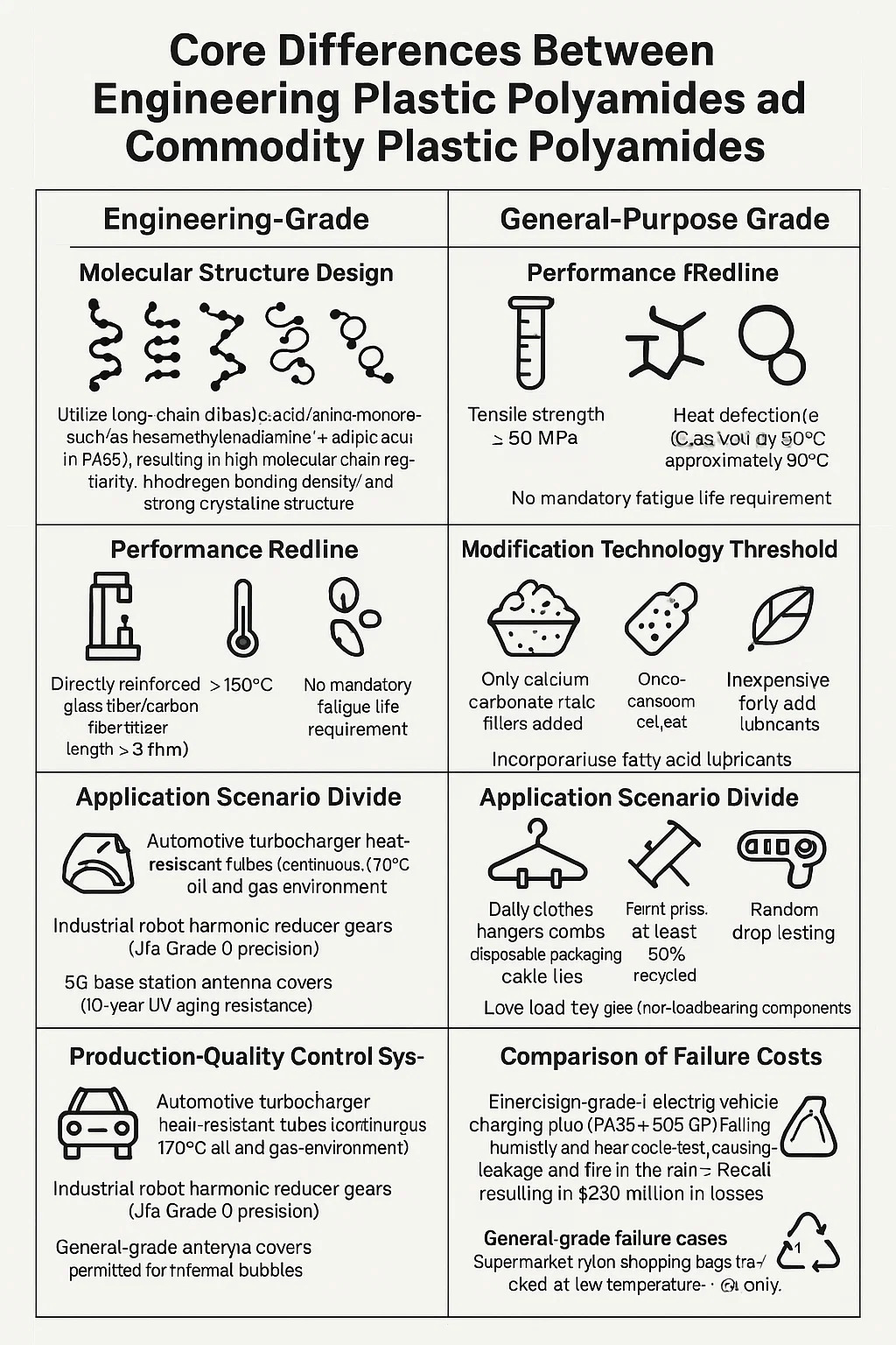 Základné rozdiely medzi Inžinierske plastové polyamidy a komoditné plastové polyamidy